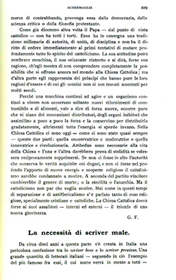 Da circa dieci anni a questa parte s'è creata in Italia una pericolosa confusione tra lo scriver bene e lo scriver prezioso. Una grande quantità di letterati italiani — seguendo in ciò l'esempio del più famoso fra essi, il cui nome verrà in mente a tutti —