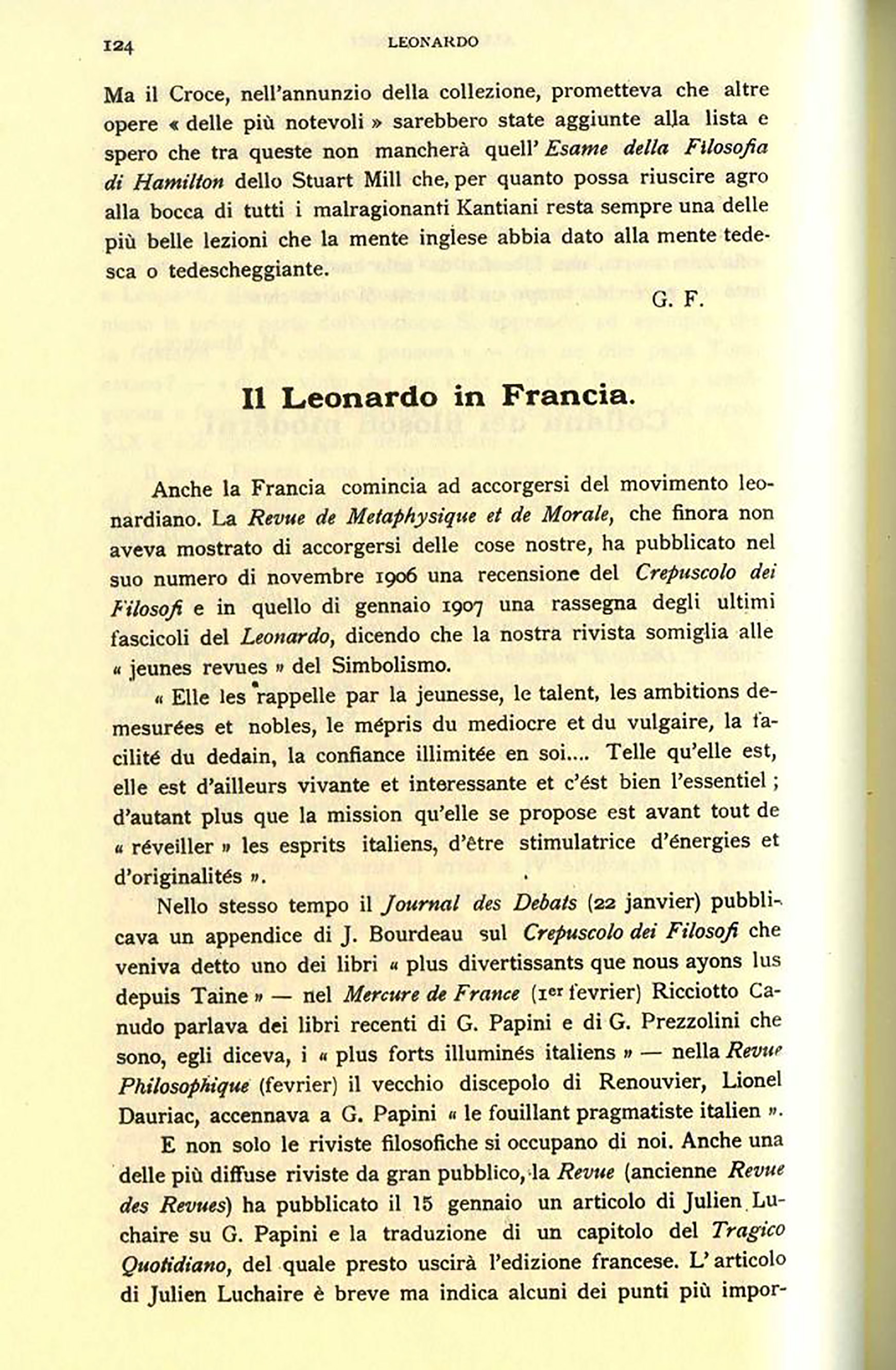 Ma il Croce, nell'annunzio della collezione, prometteva che altre opere «delle più notevoli» sarebbero state aggiunte alla lista e spero che tra queste non mancherà quell'Esame della Filosofia di Hamilton dello Stuart Mill che, per quanto possa riuscire agro alla bocca di tutti i malragionanti Kantiani resta sempre una delle più belle lezioni che la mente inglese abbia dato alla mente tedesca o tedescheggiante.
