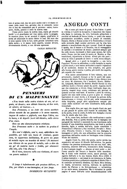 Ma nonostante tutto la figura di Angelo Conti non era tale da scotere la viziata fantasia dei periodisti. Ottimo sposo, ottimo padre, ottimo amico, ottimo fedele — nell'aspetto, insomma, il più comune degli uomini, benchè tali qualità siano sempre meno comuni: ma la perfezione non è, direbbero, «interessante». La virtù non è interessante quanto il peccato; e il ciarlatano è assai più interessante dell'eremita: in religione, poi, non v'è d'«interessante», per la plebe colta, che lo scismatico e l'eretico.