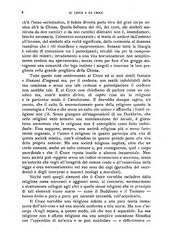 Ma quella potatura spietata che il Croce esercita sul concetto di religione non possiamo assolutamente lasciargliela passare e non già per stimoli apologetici o confessionali ma proprio per ragioni storiche, oltre che per l'esigenze della chiarezza logica e linguistica. Lasciamo pur dapparte, per il momento. l'elemento mitologico — chè si potrebbe sostenerne l'assenza nel Confucianismo e nel Buddismo — ma non si può ad alcun patto espellere dalla religione, con un semplice Crux dixit,