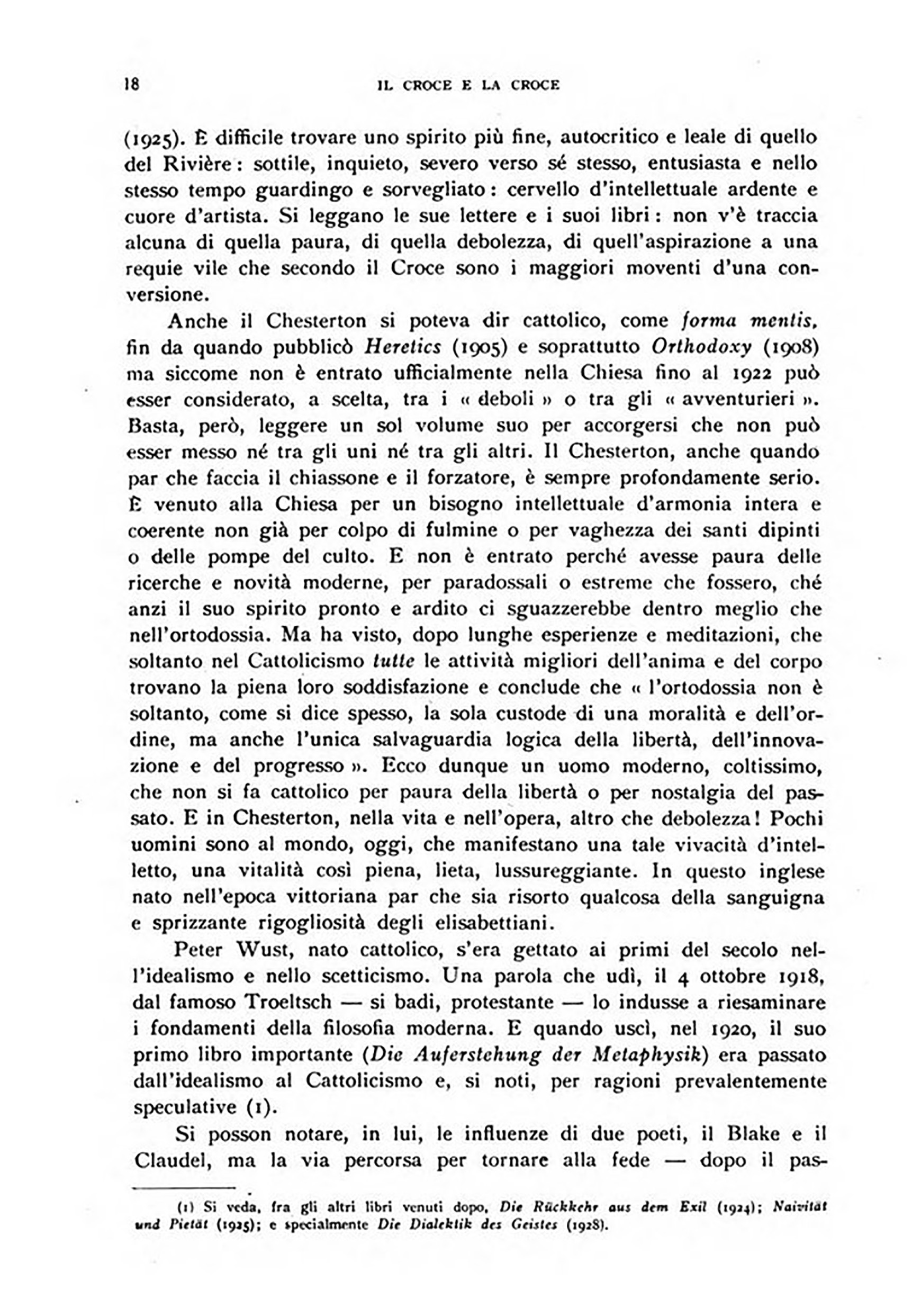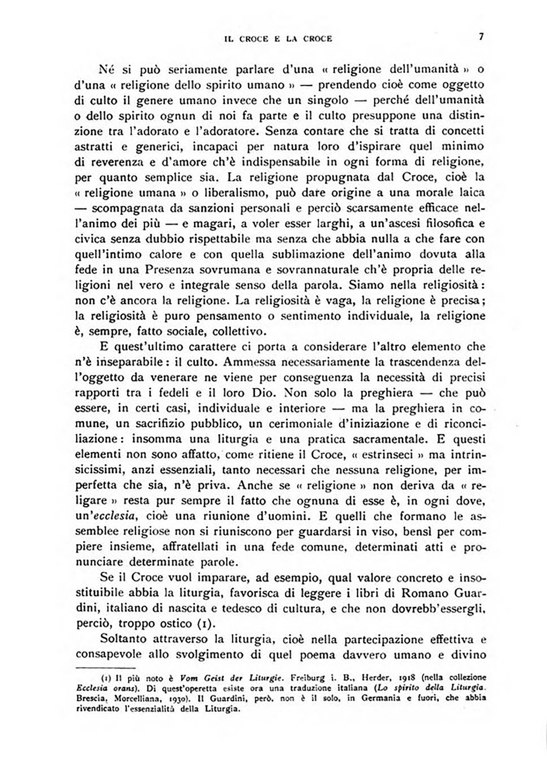 Se il Croce vuol imparare, ad esempio, qual valore concreto e insostituibile abbia la liturgia, favorisca di leggere i libri di Romano Guardini, italiano di nascita e tedesco di cultura, e che non dovrebb'essergli, perciò, troppo ostico 3.