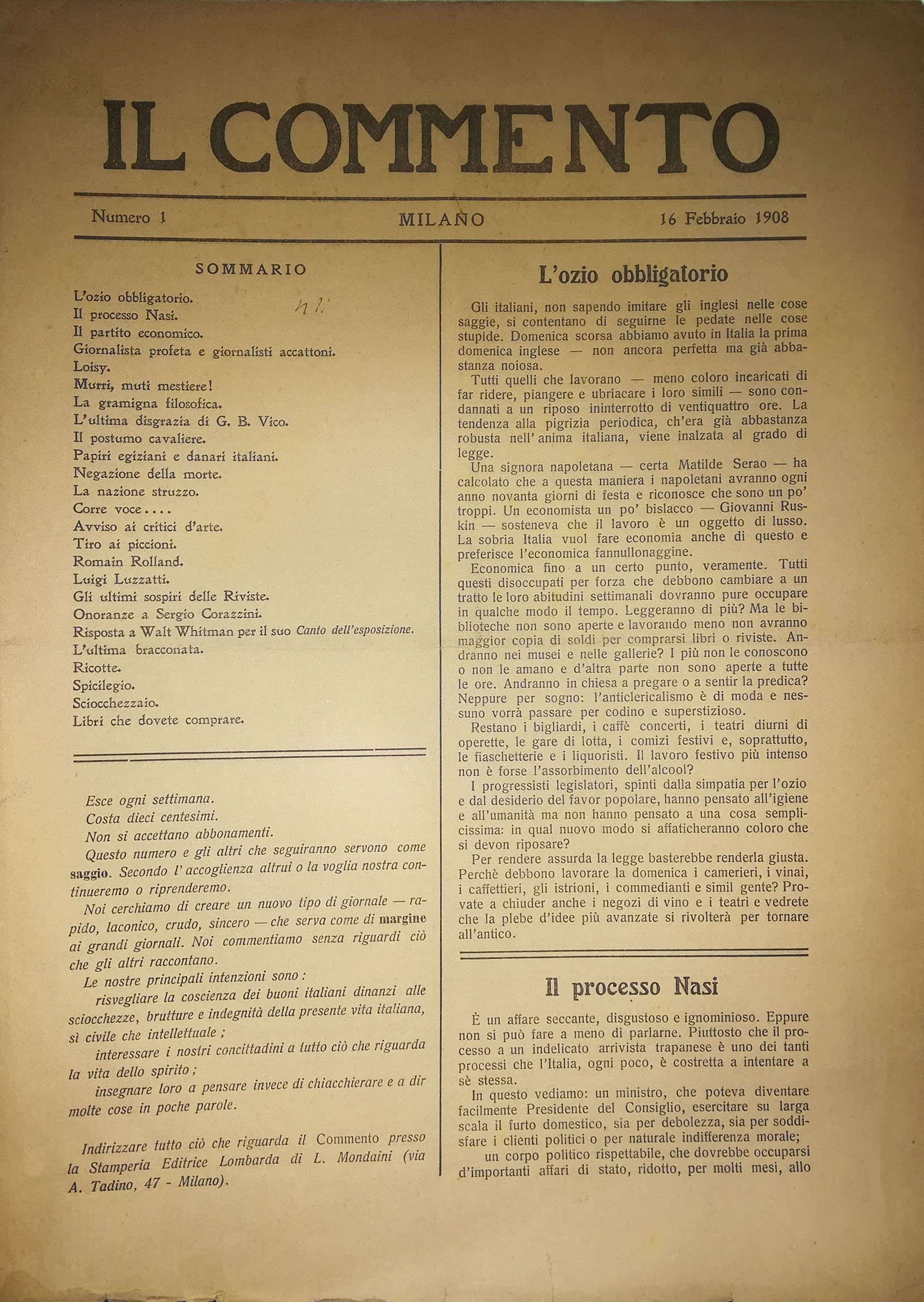 Periodo di pubblicazione: 20 dicembre 1908 - 31 dicembre 1916