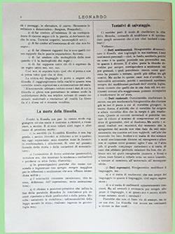 4) conseguenze metodologiche — Non avrà solo mutazioni nel contenuto ma anche nello spirito. Non esporrà più dei resultati ma consiglierà dei mezzi. Non dirà ciò che si vede per le strade ma dirà quali sono i viottoli per arrivarci e veder da sè. Avremo così la guida pel particolare (Taumasiologia) quella pel rifacimento del mondo (Magica) e quella pel ritrovamento e rifacimento di sè (Egologria).